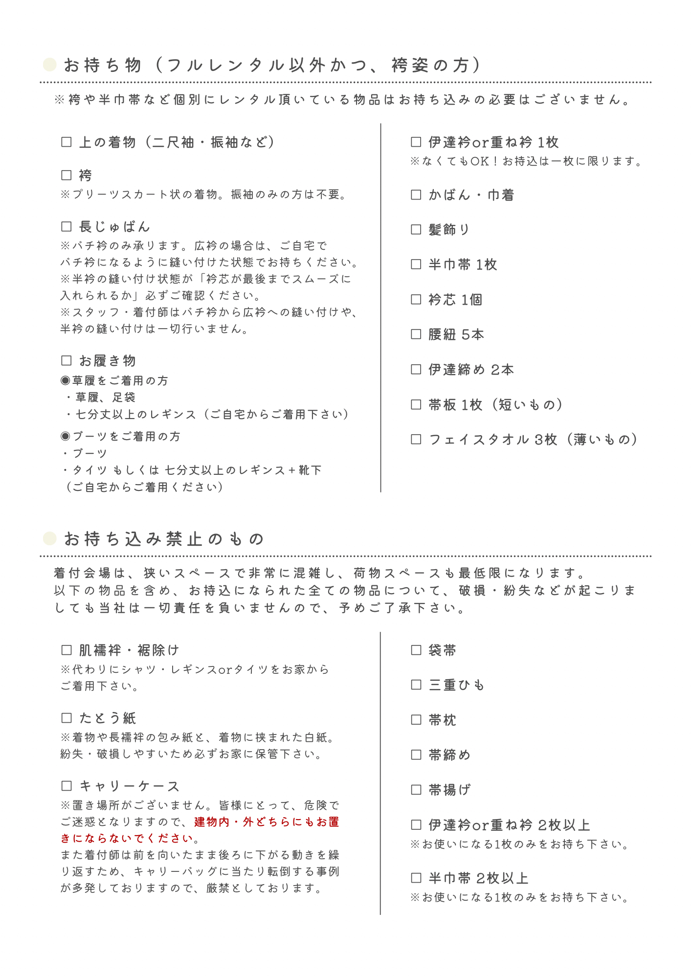 当日の持ち物(卒業式・女性)